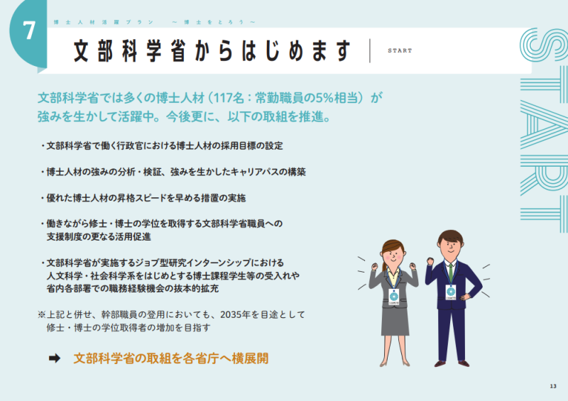博士人材の採用人数を増やしつつ、昇進スピードも速める取り組みも進めているところなので、ぜひ文部科学省でも活躍していただけるような人が今後増えていったら嬉しいなと思います。